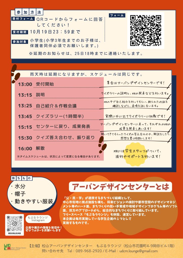 10月26日(日)13:15~16:00、松山アーバンデザインセンターを拠点に、クイズラリーを開催します!
