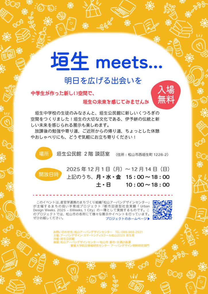 「地域の公民館のことは知っているけど、行ったことはない」「気軽に行ってもいいのか分からない・・・」という方々でも公民館で気楽に、自由に過ごしながら、伊予絣などの垣生の魅力と出会うことができる空間を中学生と一緒に作りました!