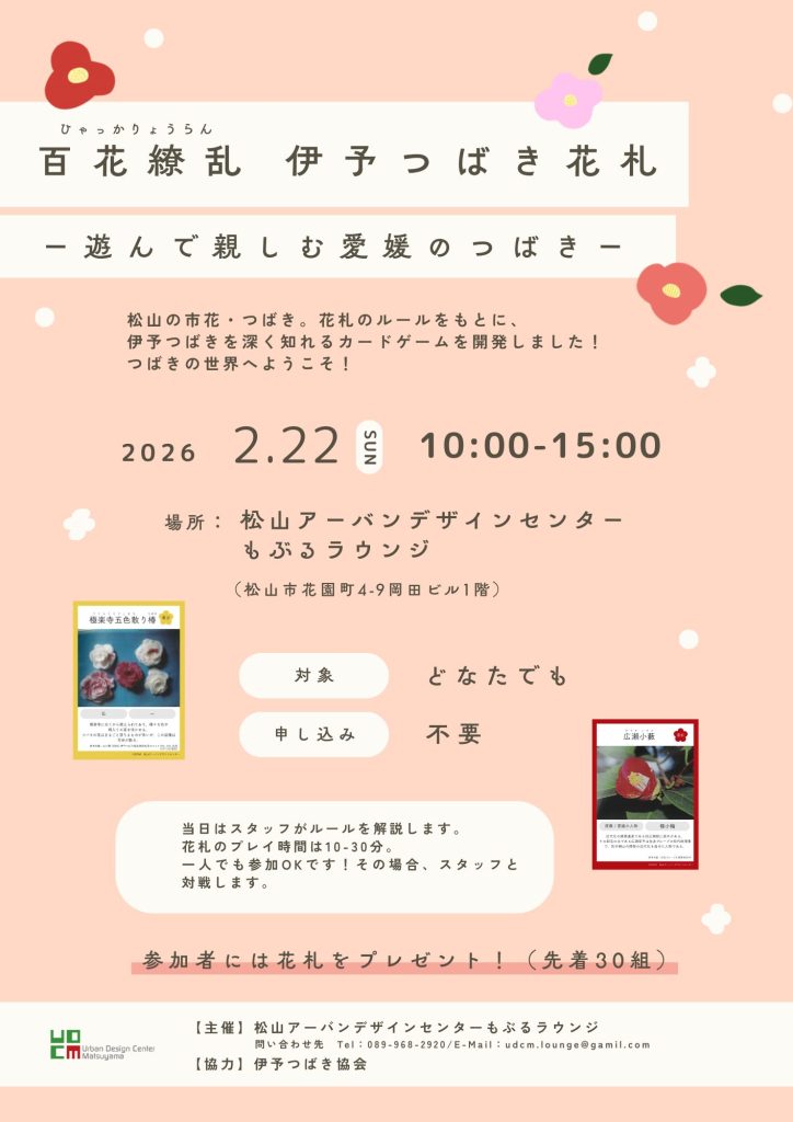 イベント当日は、花札で遊んだり、伊予つばきに詳しくなれるワークショップも行います◎