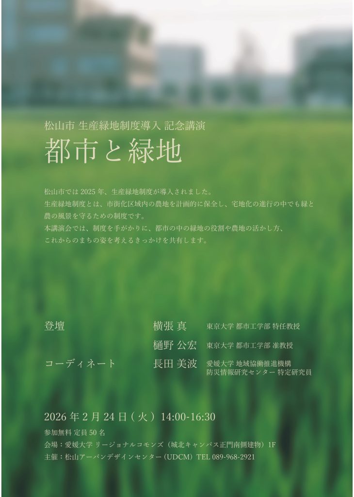 松山市 生産緑地制度導入 記念講演『都市と緑地』