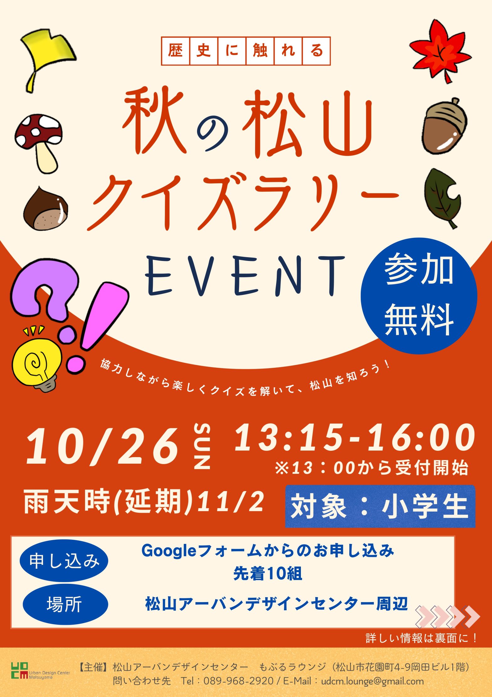 / 10 月企画『秋の松山クイズラリー』🏅 クイズを解いたり、ミッションに挑戦しながら、松山を歩いてみませんか?? 🚶♀️ \ 10月26日(日)13:15~16:00、松山アーバンデザインセンターを拠点に、クイズラリ […]
